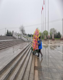 在莊嚴(yán)的英雄紀(jì)念碑下,黨員們向革命烈士敬獻(xiàn)花籃,大家懷著無比崇敬而肅穆的心情深深鞠躬并肅立默哀,共同緬懷為國(guó)家、為民族英勇犧牲的革命先輩,寄托對(duì)烈士們的無限哀思。