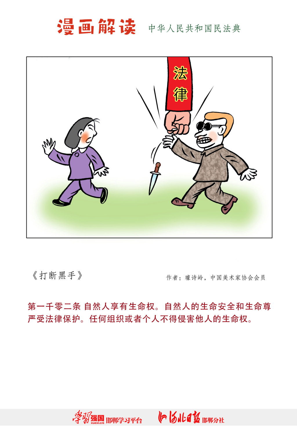 民法典是新中國成立以來第一部以“法典”命名的法律,是新時代我國社會主義法治建設的重大成果。為加強民法典普法宣傳,推動民法典走到群眾身邊、走進群眾心里,“學習強國”邯鄲學習平臺、河北日報報業(yè)集團邯鄲分社聯(lián)合推出民法典漫畫解讀。(漫畫由河北省邱縣縣委宣傳部、邱縣司法局提供)