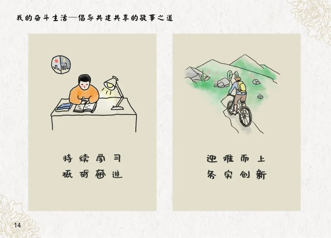 為便于理解傳播,同步推出原創(chuàng)漫畫繪本(第一冊(cè)),繪本緊緊圍繞首批30條標(biāo)準(zhǔn)創(chuàng)作設(shè)計(jì),通過(guò)柔軟的筆觸,流暢的線條,以簡(jiǎn)約明快、生動(dòng)有趣的創(chuàng)作手法對(duì)美德健康生活方式進(jìn)行了充分的解讀與建構(gòu),藝術(shù)表達(dá)緊貼生活經(jīng)驗(yàn),表現(xiàn)內(nèi)容富有濃郁地方特色,極具文人意趣與傳統(tǒng)文化韻味。