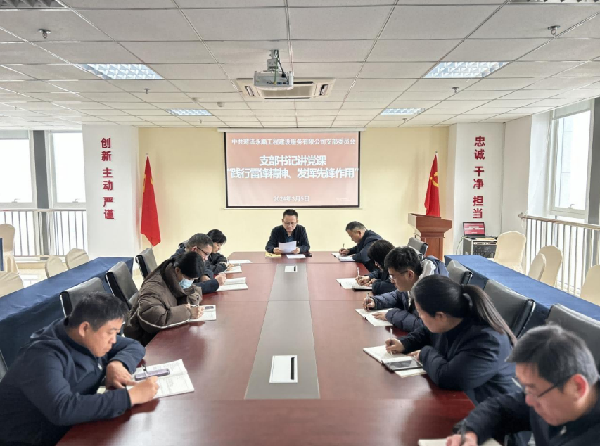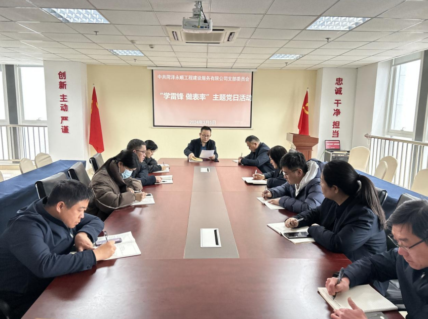 3月5日,菏澤永順工程建設(shè)服務(wù)公司黨支部開展“學(xué)雷鋒、做表率”主題黨日活動(dòng),全體黨員參加。會(huì)議由支部書記牛忠建講授“踐行雷鋒精神、發(fā)揮先鋒作用”主題黨課。