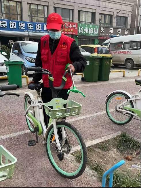 志愿者清理垃圾、將自行車(chē)進(jìn)行歸位